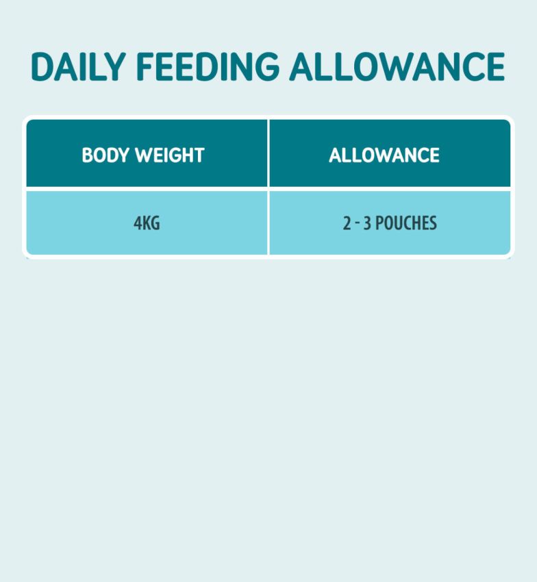 | Opis: | Potpuna mokra hrana za odrasle mačke, u vrećici. Bez umjetnih boja, umjetnih konzervansa i pojačivača okusa. Ukusna, izbalansirana i cjelovita prirodna hrana za odrasle mačke, koja održava zdravlje i vitalnost mačke u njezinom najaktivnijem životnom razdoblju. Sastojci: piletina 50%, pileća jetra 20%, pileći temeljac 10%, minerali, *ulje lososa 0,1%, *suncokretovo ulje 0,1%, sušena borovnica 0,05%, sušena brusnica 0,05%, *sušeni korijen cikorije 0,04%, *Kvasac 0,04%, prah juke 0,005%. Analitički sastav: sirovi proteini 10,5%, sirova mast 8,5%, sirova vlaknina 0,5%, sirovi pepeo 3,5%, vlaga 77%. Dodaci: nutritivni dodaci po kg: vitamin A 1000 IU, taurin 505 mg, vitamin E 20 mg, željezo (željezni (II) sulfat monohidrat) 10,6 mg, cink (cinkov sulfat, monohidrat) 10 mg, mangan (manganov sulfat monohidrat) 5,3 mg, bakar (bakar (II) sulfat pentahidrat) 1 mg, jod (kalcijev jodat, anhidrid) 0,53 mg. Uputa za hranjenje: dnevna preporučena količina - navedeno na pakiranju. Poslužite obrok sobne temperature. Osigurajte vašem ljubimcu uvijek dostupnu svježu vodu za piće. Nakon otvaranja, neiskorištenu hranu čuvajte u hladnjaku, u zatvorenoj posudi, te upotrijebite unutar 72 sata." Čuvajte na hladnom i suhom mjestu. |