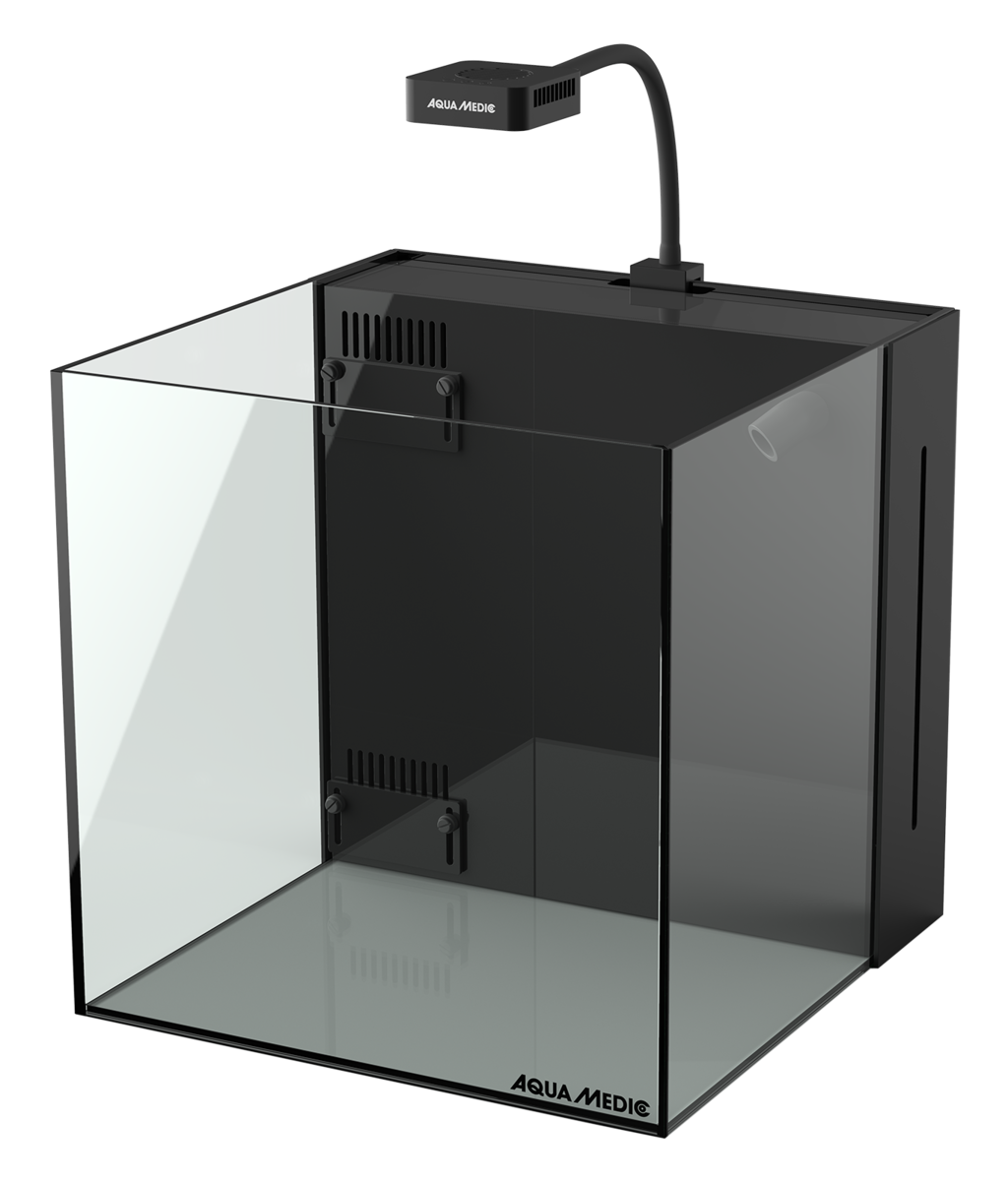 Kompletan akvarij za slanu vodu s visokokvalitetnom završnom obradom stakla. Impresivno moderan dizajn sa staklenim rubovima pod kutom od 45°. Promišljene komponente osiguravaju pouzdan rad i punu funkcionalnost. Diskretni integrirani stakleni filter spremnik zahtijeva minimalno održavanje. Genijalni dizajn filter jedinice omogucuje da se cijeli filter nenametljivo sakrije staklenim poklopcem. Oprema / opseg isporuke Skimmer: EVO 101 Vrlo tih i ucinkovit, podesivi protein skimmer (približno 3,5 W) Yasha osvjetljenje: Qube 40 Ultra-kompaktno LED svjetlo s 5 boja i visokom energijskom gustocom, kolicina svjetla podešava se rucno (maks. 40 W), ukljucujuci fleksibilnu vratnu tuba za stabilno držanje i jednostavno podešavanje. Cirkulacijska pumpa: DC Runner 600 „Ultra tiho“ zahvaljujuci optimiziranoj upravljackoj elektronici (maks. 8 W), štedljivi 24 V DC motor, polirani keramicki ležajevi i osovine za tihi i bez održavanja kontinuirani rad, može se koristiti kao cirkulacijska i protocna pumpa. Filter: integrirani filter spremnik sa staklenim poklopcem za smještaj bioloških i mehanickih filtera (npr. Multi Reactor S Gen II), ukljucujuci pretkomoru i komoru za cistu vodu za smještaj npr. sustava za nadopunjavanje Easy ili mini grijaca, ukljucujuci površinski izljev i pokazivac razine vode. |